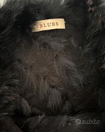 Elegante poncho IBLUES in vero lapin, colore nero. Un capo versatile e raffinato. Può essere indossato sia su un cappotto che su un maglione