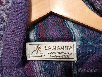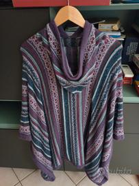 Ampio poncho per donna in maglia di lana lavorato a mano con collo alto e disegno etnico. Il disegno geometrico ha colori assortiti. Taglia unica. acquistato per un regalo, mai utilizzato, conservato intonso nell'armadio. Costo da nuovo 450 €, in vendita a 225€. Astenersi perditempo.