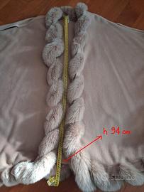 Poncho/mantella in lana vergine e angora. Bordo in pelliccia di volpe vera. Colore tortora TAGLIA 42 . NO spedizione, consegna in zona Savona.