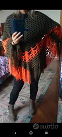 pratico e vintage poncho in misto lana con frangia. lavorazione artigianale.. in perfette condizioni come da foto taglia unica ma veste da M a XXL