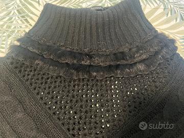Poncio nero molto pratico da portare in qualsiasi occasione , con camicia o maglione, il collo ha inserti di pelo nero,