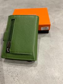 Portafogli/portatessere in vera pelle per donna POGGI MILANO prorezione RFID colore verde scuro Mini