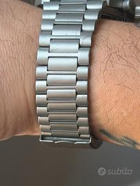 Vendo orologio Porsche Design Orfina Cronografo. Questo è la Ref. 7750. Cassa in acciaio inox con finitura sabbiata opaca in perfette condizioni. NB: Il rotore di carica non è marcato Orfina, quindi, se ne può desumere che la meccanica sia stata revisionata nel corso degli anni e, questa parte, sostituita. Il disco Datario è in italiano. Valuto scambi con Breitling , Omega , Zenith , Cartier. Visibile e acquistabile su Bergamo e provincia Accetto offerte!