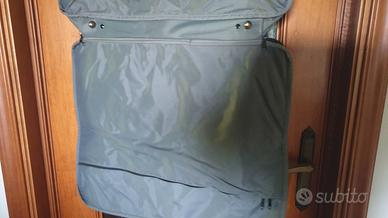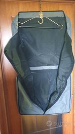 Bel porta abiti colore grigio, richiudibile a borsa e in condizioni perfette. Dotato di due ampie tasche laterali. Lunghezza aperto cm.102 - chiuso cm.51, larghezza cm.60. Vendo per inutilizzo € 30. Eventuale spedizione a carico dell’acquirente.