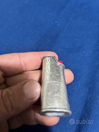 Vendo porta accendino bic interamente in argento 925 come da punzonatura sul fondo con incisioni fatte a mano ( per acquistarli nuovo si sta sulle 200/250 con incisioni)