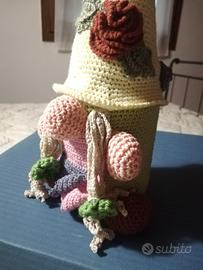 Porta accessori fatto a mano, anima in vetro lavabile in lavastoviglie, pezzo unico, la parte esterna è eseguita all'uncinetto, altezza 30 cm, larghezza 12 cm,nuovo senza cartellino