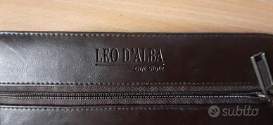Elegante cartella porta agenda e portadocumenti marchio LEO D'ALBA Gift Style in pelle colore marrone scuro semplice e dalle linee classiche con profili cuoio e chiusura a cerniera, all'interno 5 scomparti portacarte, uno scomparto piccolo per documenti, un porta penna e un porta agenda per agende con misura 21 x 15 cm, all’esterno una tasca porta documenti misura 20 cm. chiusa da cerniera, chiusura cerniera su tre lati per un comodo accesso, misure cm.19x25 chiusa. aperta cm.39, nuova, perfetta, ancora imballata in scatola originale