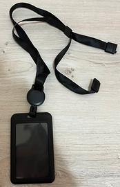 Come da titolo, si vende porta badge da collo retrattile, con cordino estraibile. L’articolo risulta essere integro e mai stato utilizzato. Per informazioni, contattatemi.