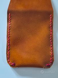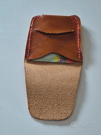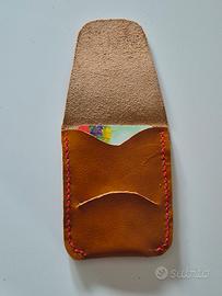 Porta carte di credito, bancomat, biglietti da visita in vera pelle realizzato e cucito interamente a mano. Qualche piccola imperfezione è proprio dovuta alla lavorazione completamente a mano come una volta. Effetto vintage. Lavorazione artigiana e prodotto in Italia