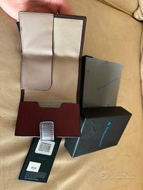 Portacarte donna automatico in metallo e pelle, schermato con protezione RFID Specifiche tecniche Numero comparti: 2 Materiale: metallo e pelle Slot per banconote:1 Capacità di: 5 carte a rilievo Capacità di: 7 carte senza rilievo Fessure per carte di credito: 1 Codice prodotto: PP5649W92R Dimensioni: 6.5 x 10.0 x 2.0 (cm) Peso: 92 gr Nuovissimo Ottima idea regalo 🎁