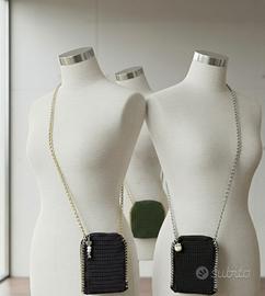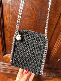 Porta cellulare realizzato internamente a mano all'uncinetto con catenella tracolla.