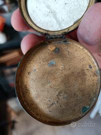 Porta cipria da borsetta antico della Casa Francese Houbigant France Paris inciso sul bordo in caratteri Sans-serif (marchio storico di profumi e cosmetici attivo alla fine del '700.