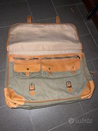 Bellissima borsa in tessuto e pelle Toscana completamente nuova, mai usata. Lavorata a borgo San Lorenzo e di mio padre che purtroppo non ha mai usato. È presente anche la tracolla ancora impacchettata e nella tasca della stessa valigetta.
