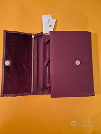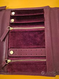Porta gioielli da viaggio H&M in similpelle bordeaux interno in velluto, chiusura con calamita, collana in regalo, chiuso misure 21x16x4 cm e aperto misure 22x21 cm, in abbinamento con porta occhiali. Nuovo con cartellino.