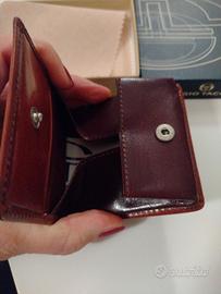 Porta monete in pelle marchiato Sergio Tacchini. Nuovo con cartellino 8x8 cm e con scatola originale