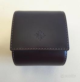 Scatola da viaggio per orologi Patek Philippe, in pelle di colore marrone.