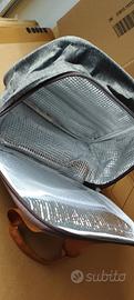 Borsa porta pranzo in tessuto grigio con manici.