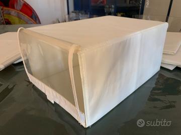 Vendo per mancato utilizzo nove (9) portascarpe Ikea modello skubb (scatole per scarpe / Contenitori per scarpe) salvaspazio e ottime per ridurre il disordine dare stile e permettere di organizzare al meglio i tuoi spazi per le scarpe. La retina sul retro consente la circolazione dell’aria. Vendita in blocco. Costo meno della metà del nuovo ikea. 8 pezzi sono del vecchio modello (rete per circolazione aria sul retro, tratti a trasparente per vedere il modello di scarpe davanti) e uno del nuovo tipo (rete sia davanti che dietro).