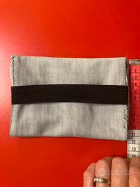 Realizzato a mano con jeans riciclati, vari scomparti per cartine accendino e filtrini.