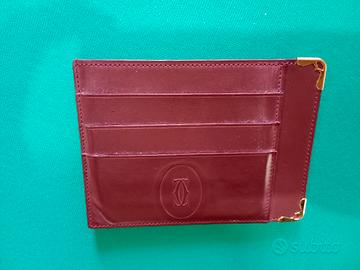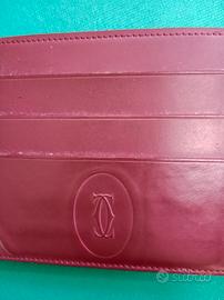 Vendo elegante porta tessere originale Cartier in pelle colore bordeaux con finiture dorate.