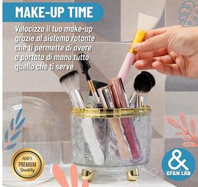 EF&N Lab Porta Trucchi Organizer Rotante 360 Gradi - Portapennelli da Trucco Chiuso con Campana Trasparente Elegante e Compatto