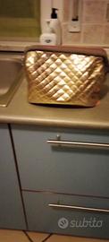 porta trucco dorato con cerniera molto capiente fodera interna in cotone