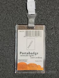 Soluzione pratica per lavoro, eventi o ufficio 👔: porta badge verticale in plastica rigida, resistente e leggero, completo di cordino bianco con sgancio rapido per massima comodità 🔑