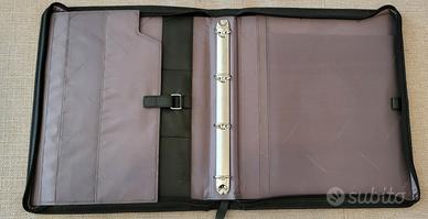 Portablocco Piquadro nero con cerniera. Misure cm 34x30 (compreso la maniglia). Inserti in pelle e suddivisione interna come da foto. Mai usato,ha solo un piccolissimo segno bianco sotto alla cerniera esterna ,(vedi foto)