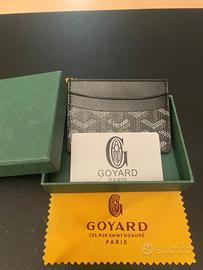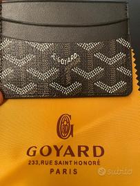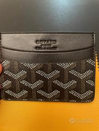 Portafoglio Goyard nero con il tipico motivo decorativo della marca francese. L'oggetto è nuovo con etichetta.