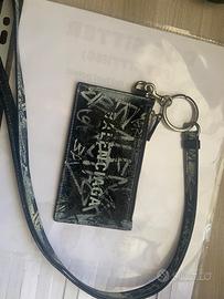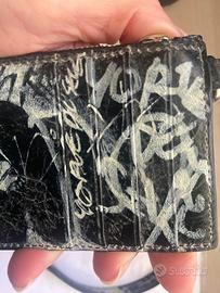 Balenciaga Portacarte con 4 fessure, portamonete con zip e cinturino , portachiavi in pelle nera e fantasia.Bisex ..buono stato usato poco .senza confezione! Richiesta 160 euro