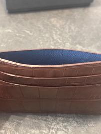 Tasca piatta centrale blu cobalto, quattro scomparti esterni per carte – due anteriori e due posteriori.