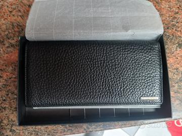 Prestigioso portacarte firmato Zegna,in pelle nera,ancora inscatolato.Misure 18 x 10