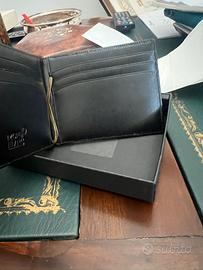 Portafoglio in pelle nero effetto Montblanc, sei scomparti per le carte di credito, fermasoldi in metallo e fodera interna in jacquard con logo Montblanc