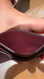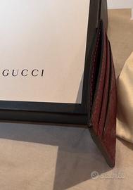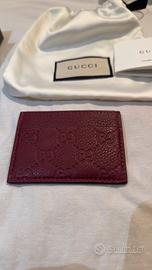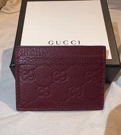 Elegante portacarte Gucci in pelle bordeaux. Nuovo mai utilizzato - Design con logo GG impresso. - Include scatola e dustbag originali.