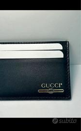 Porta carte Gucci in pelle di colore nero con timbro oro inciso a fuoco.