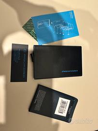 Portacarte uomo automatico in metallo e pelle, schermato con protezione RFID. Nuovo mai usato Completo di scatola e controscatola