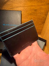 Portacarte Piquadro in pelle nero dettaglia azzurri mai usato