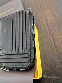 Portacarte e portasoldi Mandarina Duck, con cerniera, nero con retro bicolore (una parte è grigia)