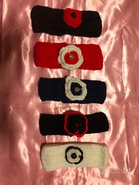 Portacellulari e fasce capelli per bambina (solo la marrone con la spilla è da adulta e puo essere usata sia come scaldacollo che come fascia per capelli) Tutto realizzato interamente a mano