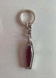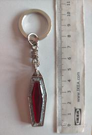 Originale portachiavi in metallo a forma di bara o cassa da morto.