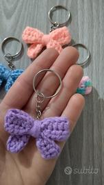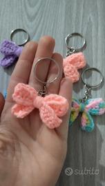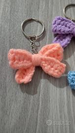 graziosi portachiavi fatti a mano a uncinetto, differenti colori. a forma di fiocco 🎀🎀🎀 per ragali pronta consegna