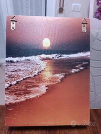 Portachiavi da muro, a libro con splendida illustrazione di tramonto sul mare. Sei ganci per altrettanti mazzi di chiavi. Misura cm 28 x 21 x 6 cm alto. e gancetti posteriori