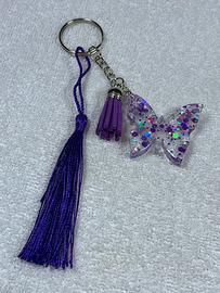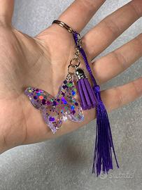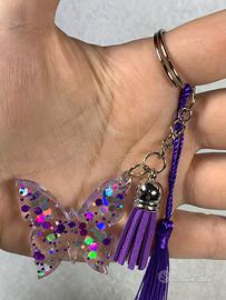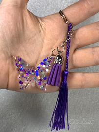 Portachiavi fatto a mano in resina epossidica, realizzato con stampo a forma di farfalla. Il design è arricchito da splendidi brillantini viola che creano un effetto luminoso e unico. 💜 Colore: viola con glitter 🦋 Forma: farfalla ✨ Dettagli: superficie lucida con effetto brillante 🔗 Accessori: due ciondoli decorativi che lo rendono ancora più originale 🖐️ Realizzato a mano – ogni pezzo è unico Perfetto come idea regalo o per personalizzare chiavi, zaini o borse con un tocco elegante e creativo. 📦 Condizioni: nuovo 🚚 Spedizione disponibile in 24h