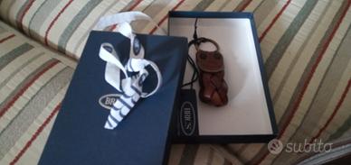 Portachiavi Bric's in pelle marrone intrecciata. Mai utilizzato, confezione originale completa di scatola e nastro. Perfetta idea regalo