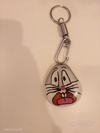 Portachiavi artigianale con Bugs Bunny dipinto a mano su un sasso. - Design unico del personaggio. - Finitura lucida.