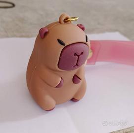 Portachiavi con personaggio Capybara, nuovo mai utilizzato, personaggio alto 4,5 cm circa in PVC, il laccetto con la scritta Boom è in silicone ed è lungo circa 10 cm