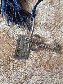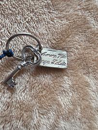 Piccolo ciondolo portachiavi in argento, con piccola chiave e targhetta "Amore vita forza salute". Piccolo come ultima fotografia, 8 gr. circa.