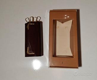 PORTACHIAVI (cm 9,5) vintage in cuoio marrone per quattro chiavi, con chiusura a doppio bottone, nella sua scatola originale