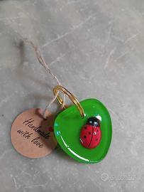 portachiavi in resina fatto a mano, con coccinella porta fortuna