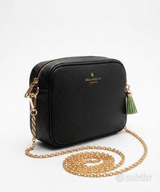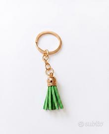 Portachiavi con nappina verde e dettagli oro